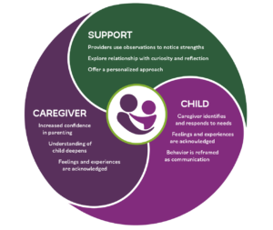 Along with developmental support for birth to 3-year-olds, our ESIT team offers an approach called Promoting First Relationships (PFR), a research-based program developed at the University of Washington that focuses on attunement between a caregiver and their child. PFR isn’t about handing parents a list of things to do differently. It’s built on the premise that most caregivers are already doing so many meaningful, loving, connective things with their children every single day, and sometimes they just need someone to help them see it. Every caregiver has the capacity to more deeply understand themselves and their relationship with their child.